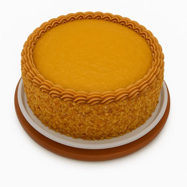 Massa de pão de ló branco e chocolate, recheado com creme de ovos, suspiro, nata, creme de castanha caramelizada e strogonoff de nozes, com cobertura de nata com doce de leite e crocante castanha