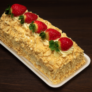 Bolos, Festas e eventosMassa de rocambole branco, recheado com creme de leite condensado, morango e nata com cobertura de nata, morango e suspiro.R$76,40 /kgR$76,40 /kg -